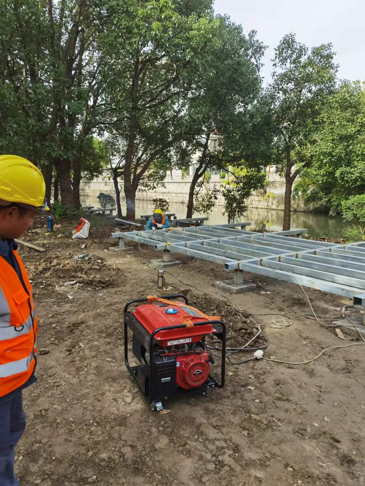 某城市綜合性公園升級改造項目中,公園路基施工涵蓋休閑步道、景觀平臺、小型橋梁基礎等多個區域,施工路段分散且多臨近綠植與現有設施,焊接需求貫穿全程——步道鋼筋連接、景觀平臺鋼結構固定、小型橋梁基礎預埋件焊接、施工工具應急供電等,均需可靠的焊接與供電支持。項目初期曾嘗試傳統電焊機搭配獨立發電機,不僅設備搬運繁瑣、易對周邊植被造成碾壓,還常出現電壓不穩導致焊接質量不達標、設備頻繁停機等問題,嚴重影響施工效率與園區環境。