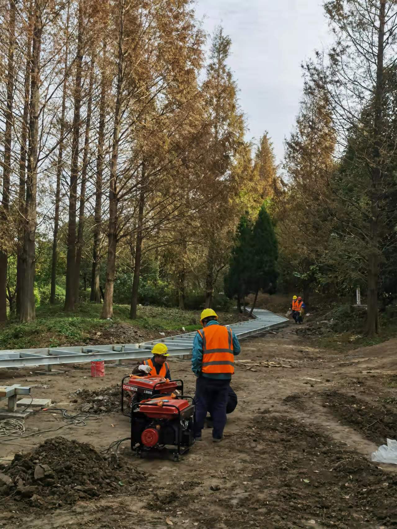 為解決這一困境,項目方引入移動式汽油發電電焊機,有效扭轉了施工被動局面。該設備搭載高效汽油發動機,無需外接電源,開機即可實現焊接與發電雙重功能,既可為公園路基焊接作業提供穩定電流,又能為現場切割機、小型水泵、照明設備等輔助工具供電,實現“一機兩用”,顯著降低設備采購與管理成本,同時小巧的機身也減少了對園區植被與設施的影響。