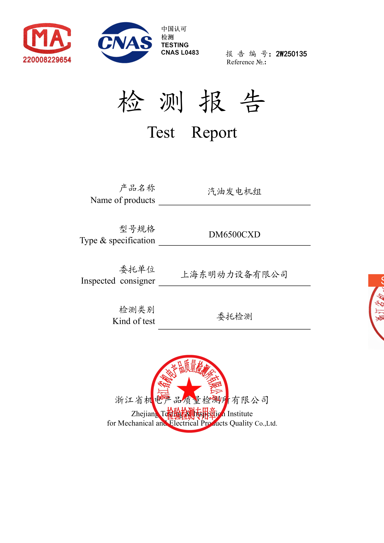 在應急供電、戶外作業與日常備用供電場景中,一款性能穩定、功率適配的發電機是保障用電需求的重要設備。上海東明深耕發電設備制造領域,其推出的單相汽油發電機 DM6500CXD具備檢測機構出具的檢測報告,同時依托成熟的工藝、穩定的輸出表現,成為適配多種常規用電場景的優質選擇,適用于工程施工、應急備用、小型作業等多種場景。