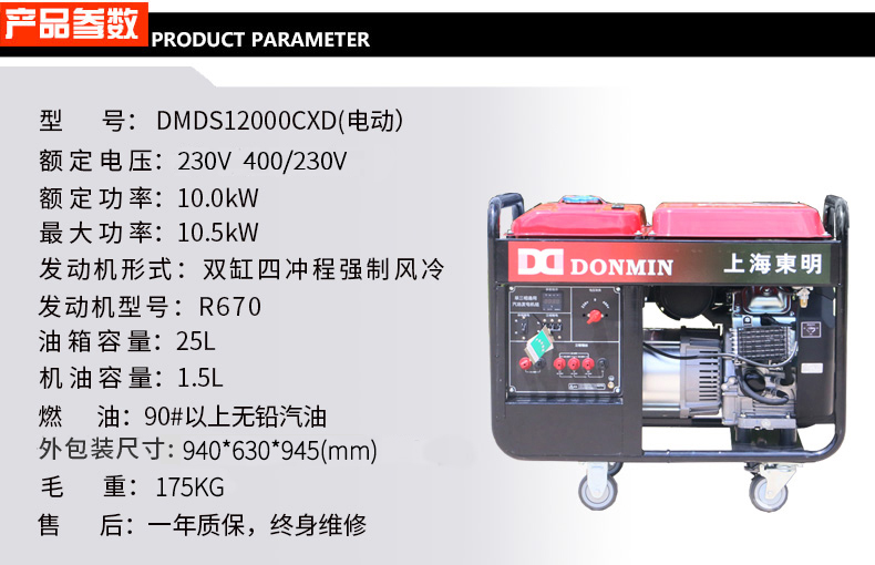 - 工程施工供電優(yōu)選:上海東明DMDS10000CXD 8kW汽油發(fā)電機