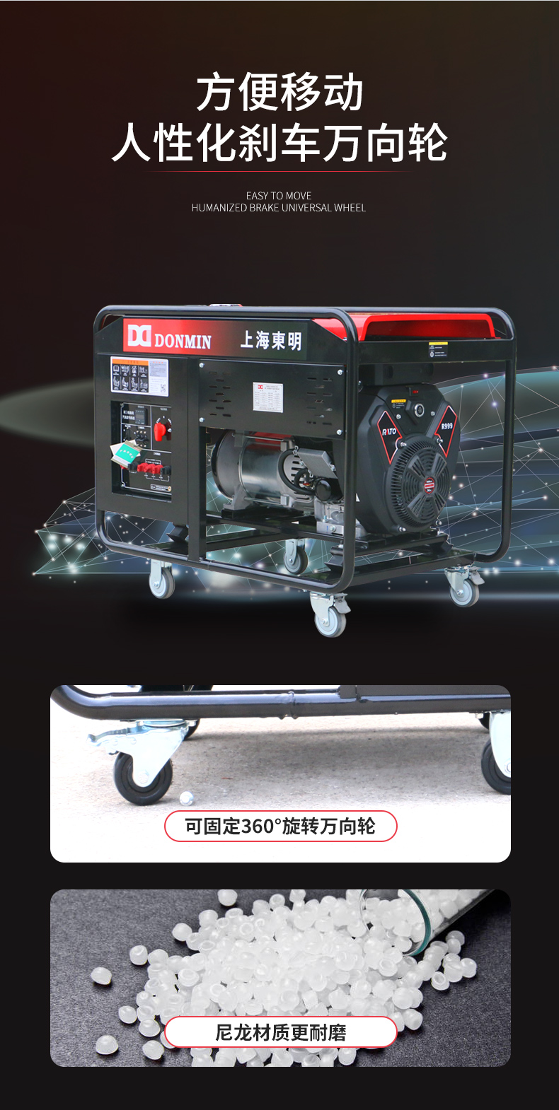 其實當初采購這款發電機時,我們對比了不少品牌,最終被上海東明二十多年的源頭制造實力和產品適配性打動。這款DMDS18000CXD是15kw級汽油發電機,專為應急搶修、戶外作業等場景設計,機身配備萬向移動輪,兩名工作人員輕輕一推就能移動,很快就能送達供電點位,無需費力搬運大型設備,為排澇爭取了寶貴時間。