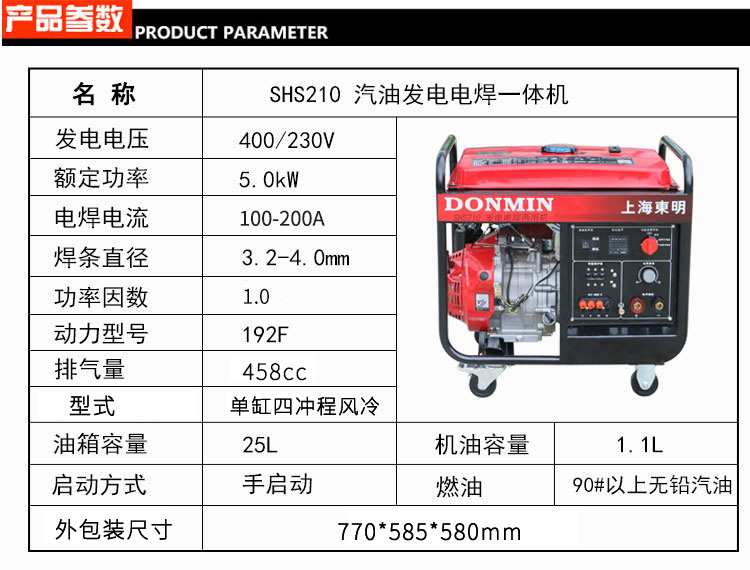 100-200A三相 手動5KW汽油發(fā)電電焊一體機SHS210