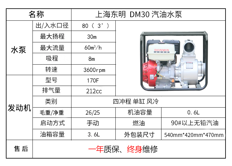 * 表示必填采購:3寸 (80)汽油動力自吸抽水泵 DM30