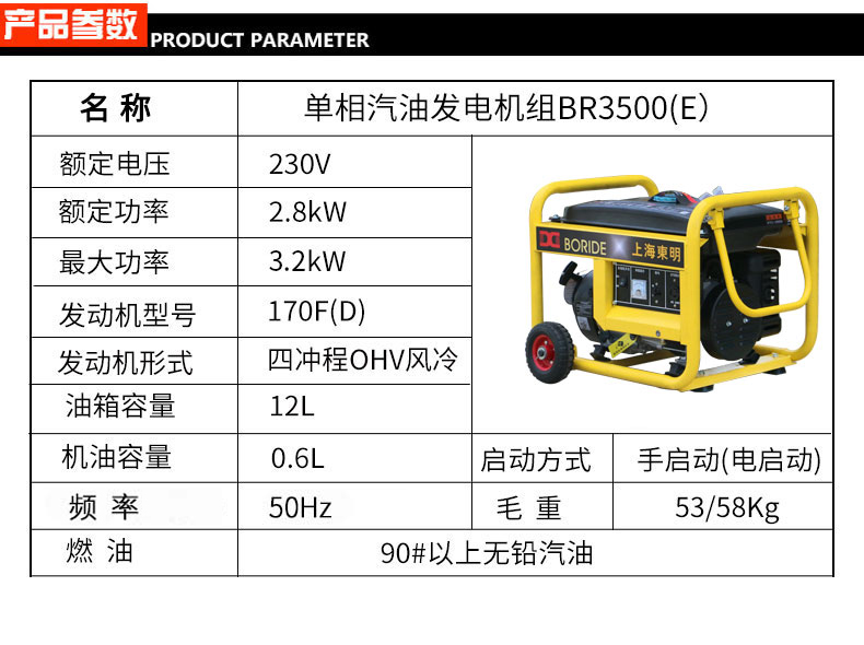 3KW單相小型發電機組BR3500