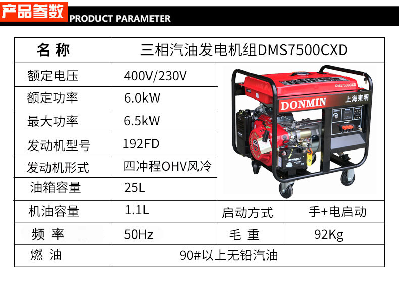 - 三相6KW小型汽油發(fā)電機(jī)組DMS7500CX