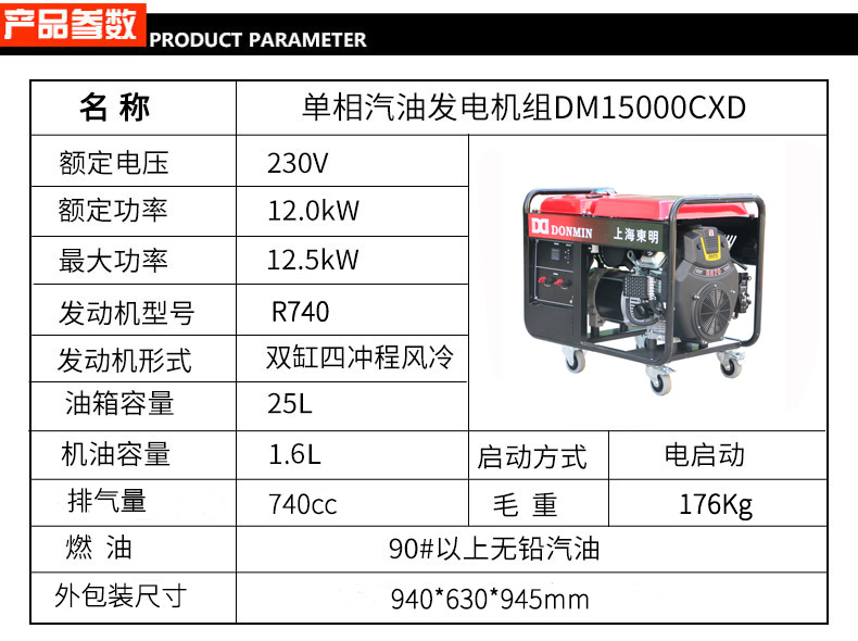 單相12kw汽油發(fā)電機(jī) DM15000CXD
