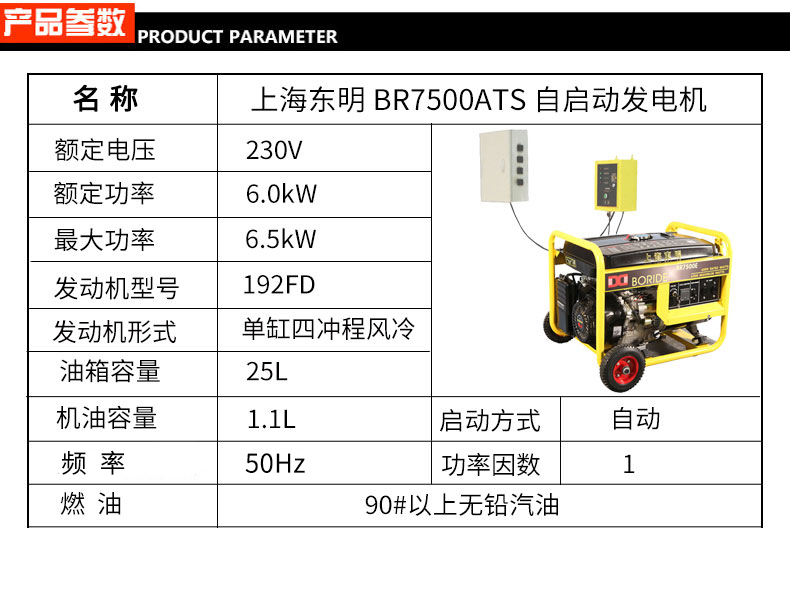 * 表示必填采購:單相6kW無人值守ATS小型汽油發電機組BR7500ATS