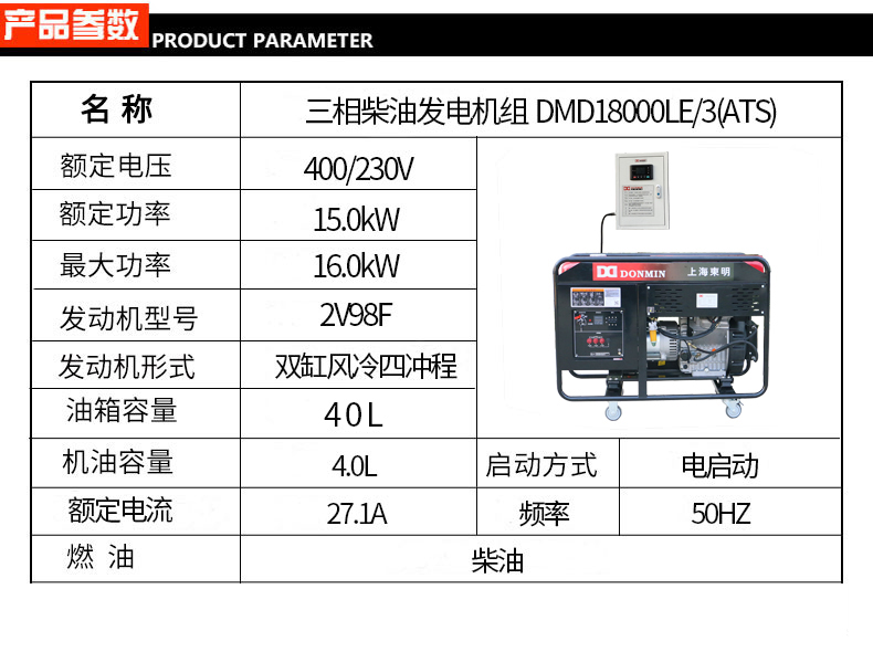 * 表示必填采購(gòu):冷鏈配套三相15kw無(wú)人值守ATS柴油發(fā)電機(jī) DMD18000LE/3(ATS)