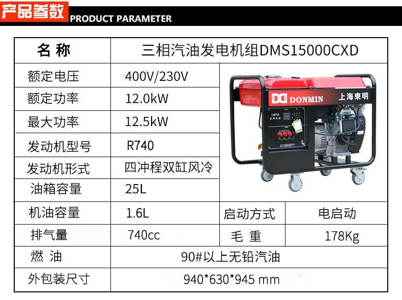 * 表示必填采購:三相12kW小型汽油發電機組 DMS15000CXD