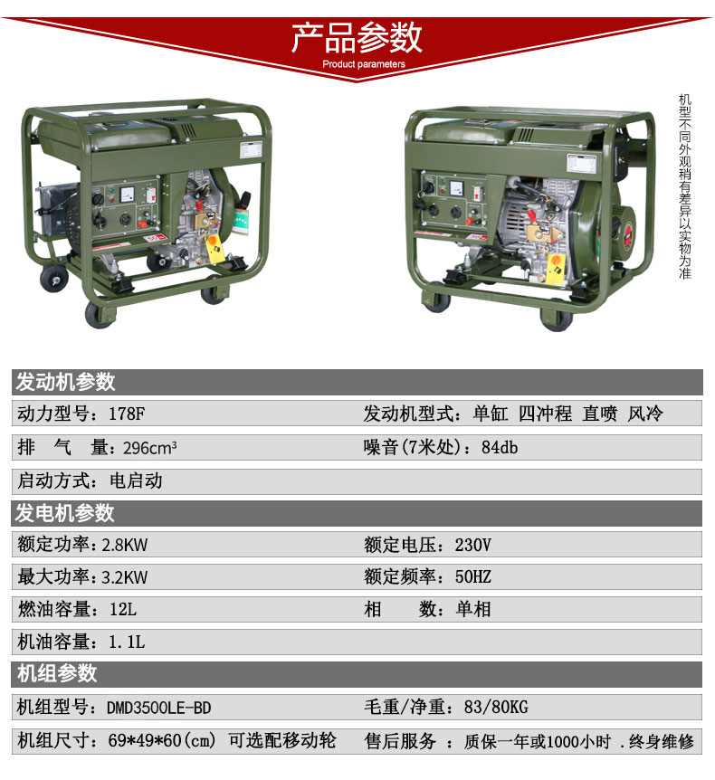 * 表示必填采購:野外訓練配套小型3kw柴油發電機組 DMD3500LE-BD